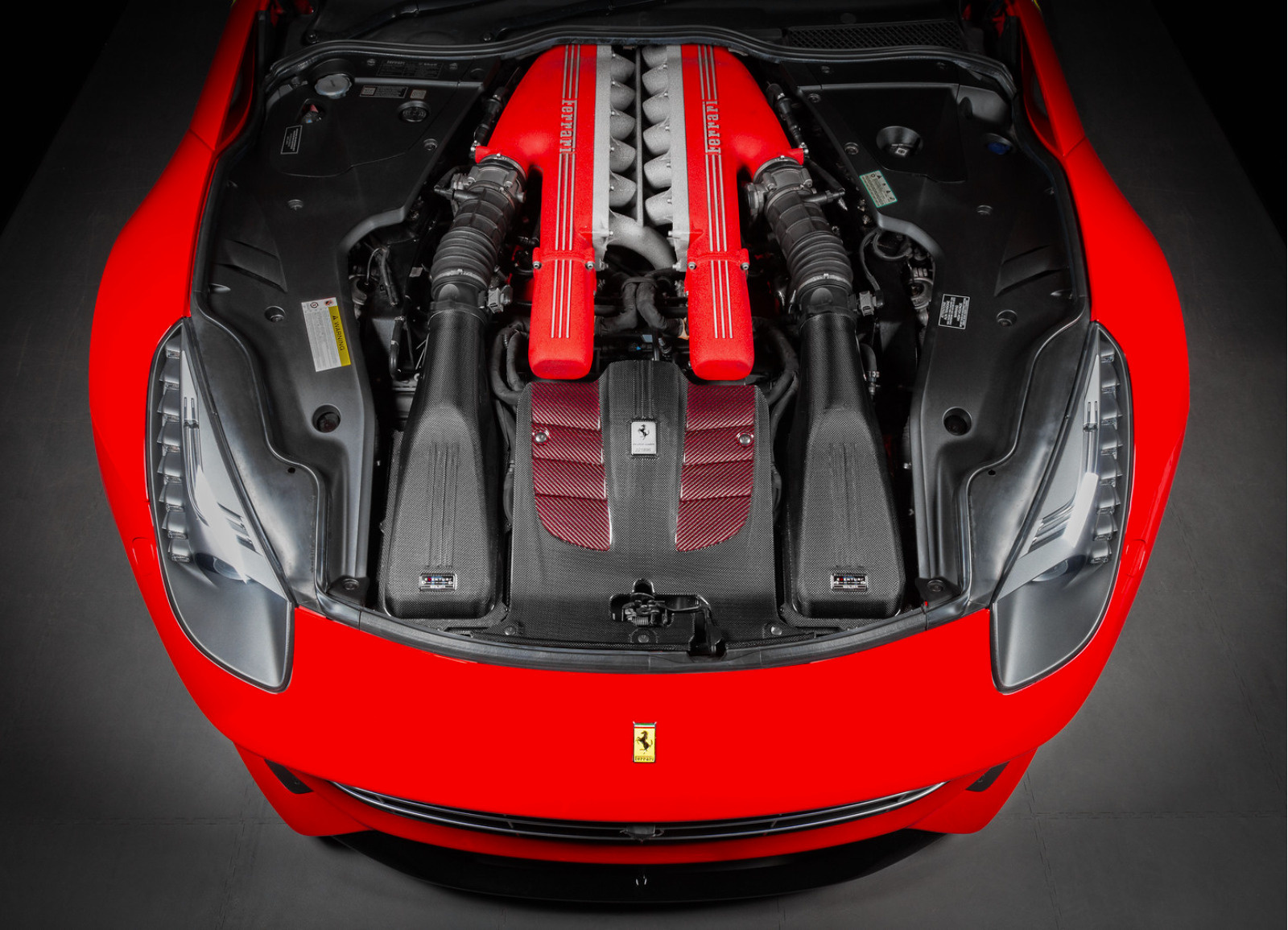 Ikonické Ferrari F12 Berlinetta je se svým legendárním atmosférickým motorem 6,3 l V12 mistrovským dílem již z výroby. Sání Eventuri mu ale dodává ten finální prvek, který ho dovádí k dokonalosti. V tomto případě nejde o kompletní přepracování sacího vedení. Naproti tomu Eventuri respektuje originální řešení sání motoru V12 a vylepšuje ho nově vyvinutými karbonovými víky obou airboxů. To přináší větší objem a díky optimalizovanému tvaru také efektivnější směrování vzduchu do motoru. Design pak dotváří dvoubarevný centrální kryt vyrobený z karbonu a červeného kevlaru. Všechny karbonové díly sání Eventuri dodržují pro Ferrari typickou strukturu propletení karbonových vláken se čtvercovým motivem. Příruby integrované ve víkách airboxů zajišťují dokonalé utěsnění jako v případě originálních vík.