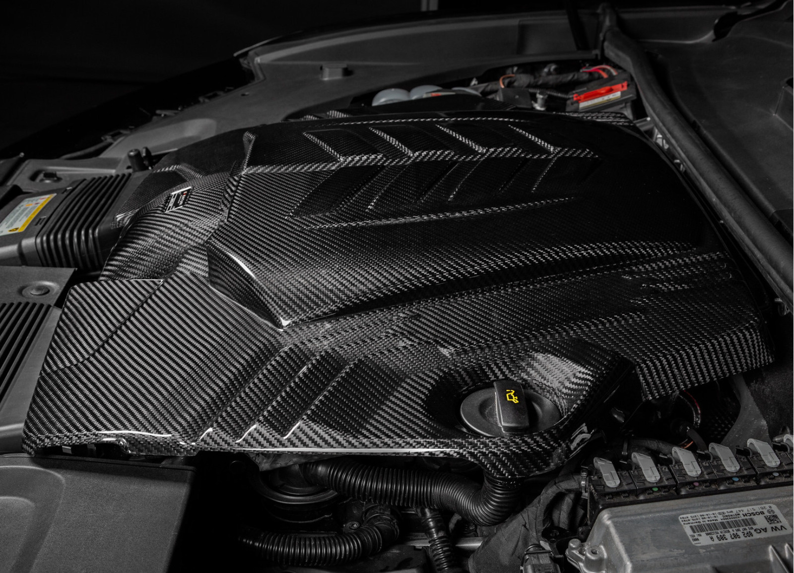 Originální kryt airboxu se ukázal jako velmi limitující hned v několika ohledech. Na straně výstupu omezoval vedení vzduchu z kolektoru a tím i množství vzduchu proudícího k turbodmychadlům. Dále omezoval samotný objem airboxu jako zásobníku pro nasávaný vzduch. A v neposlední řadě limitoval rozměry použitého filtračního média. Zvětšením krytu mohl být podstatně zvětšen výstup v podobě kolektoru, který svádí vzduch k jednotlivým vstupům do turbodmychadel a také bylo možné použít větší vzduchové filtry. Kryt je vyroben ze 100% prepreg karbonu a montuje se na tovární úchyty.