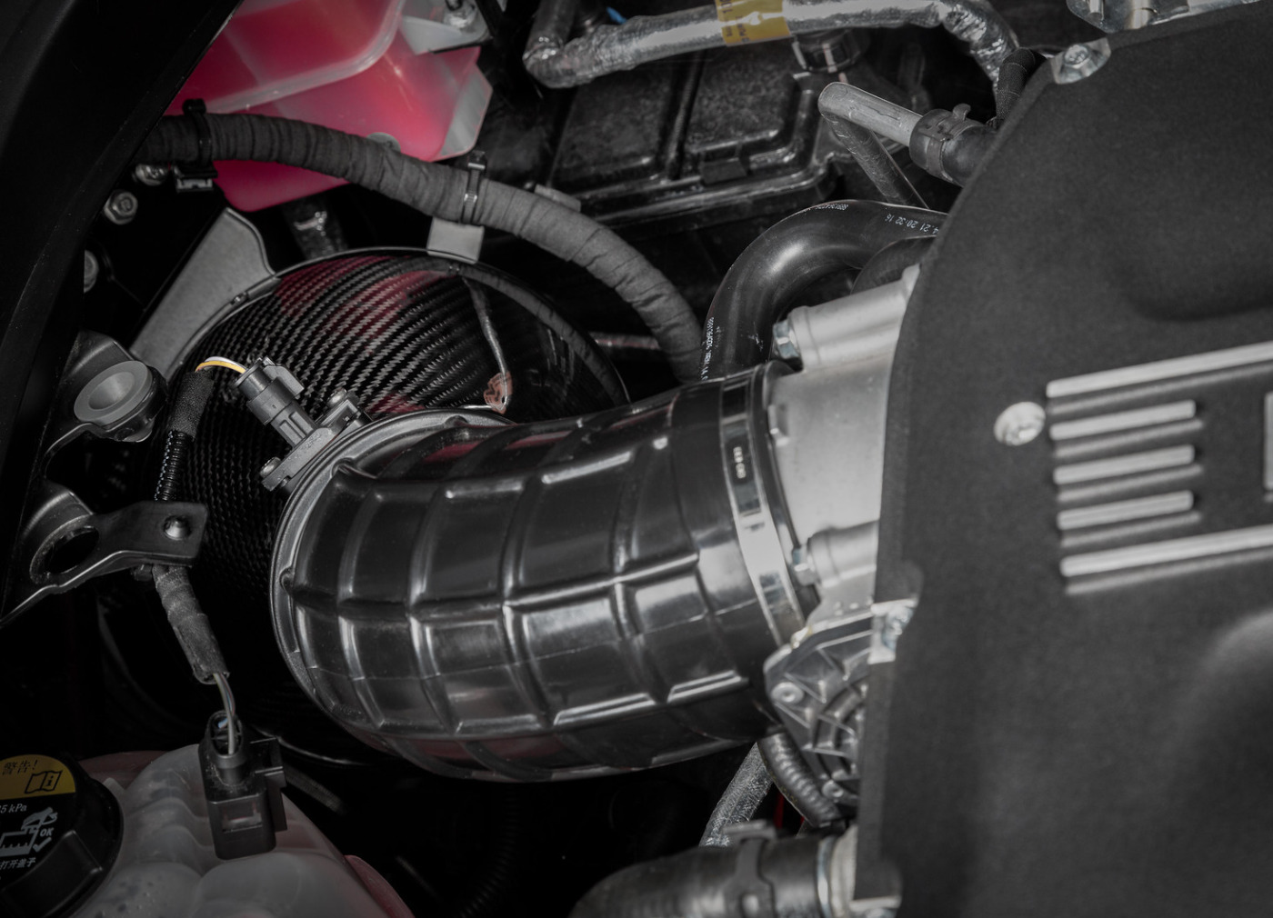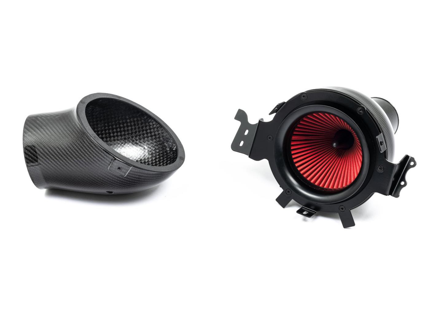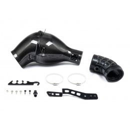 Karbonový airbox je na straně vstupu utěsněný karbonovým nasávačem, který navazuje na tovární přívod čerstvého vzduchu za zadním křídlem. Zdroj vzduchu je téměř ideální, protože vede přímo do airboxu a spolu s uzavřenou konstrukcí sání udržuje nízkou teplotu nasávaného vzduchu.