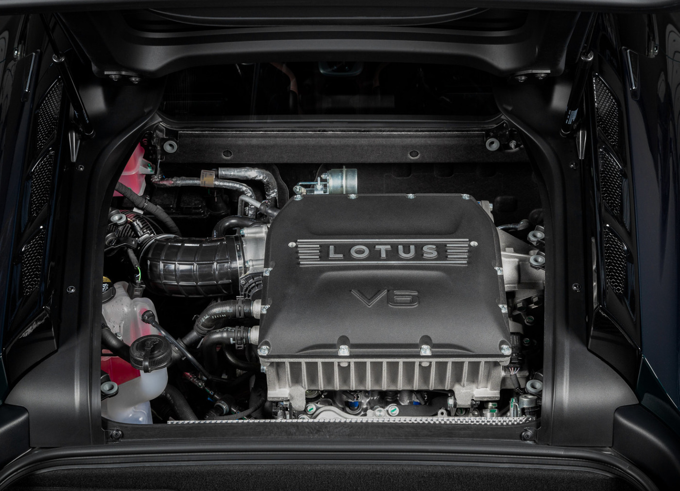 Eventuri představuje karbonový kit sání pro Lotus Emira V6 Supercharged. Sání je výsledkem pečlivého vývoje a testování, aby bylo dosaženo zlepšení v proudění vzduchu do motoru. Řešení Eventuri kompletně nahrazuje tovární airbox se vzduchovým filtrem s cílem co nejvíce napřímit vedení vzduchu do motoru a snížit teplotu nasávaného vzduchu. Hranatý původní airbox tak nahradil patentovaný karbonový airbox s obráceně umístěným kónickým filtrem. Sání je doplněno o vlastní EPDM hadici, která má oproti originálu také hladší vnitřní povrch v porovnání s originální hadicí, která má na vnitřní straně drážky a výrazné zahnutí, které způsobuje nežádoucí turbulence při průtoku vzduchu. Tato pružná hadice zároveň umožňuje potřebný pohyb mezi airboxem a motorem. Samotný airbox je pak utěsněn karbonovým nasávačem, který využívá tovární zdroj čerstvého vzduchu.