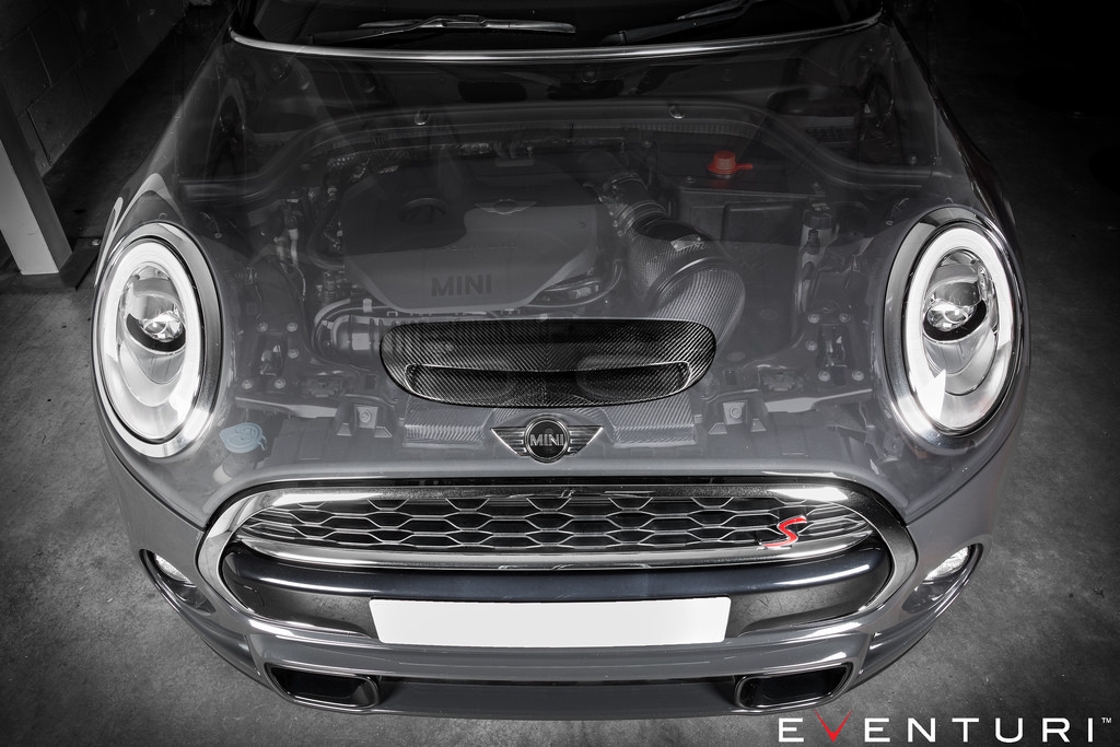 Eventuri kit sání pro Mini Cooper S/JCW je dalším z kompletních systémů vedení nasávaného vzduchu do motoru. Jedná se o kompletně uzavřený kit sání, který zajišťuje, že turbodmychadlo nenasává horký vzduch z motorového prostoru. K zajištění dostatečného přísunu čerstvého vzduchu doplnilo Eventuri karbonový nasávač místo originálního dílu v kapotě. Nasávač Eventuri má větší průchodnost vzduchu. Výsledkem je snížení teploty nasávaného vzduchu oproti sériovému vedení a airboxu. Aby byl vzduch veden ideální cestou bez restrikcí a nežádoucích turbulencí v sání, používá i tento kit sání patentovaný venturi airbox s reverzně uloženým sportovním filtrem. Instalací sportovního kitu sání Eventuri je zajištěn zcela hladký průchod nasávaného vzduchu.