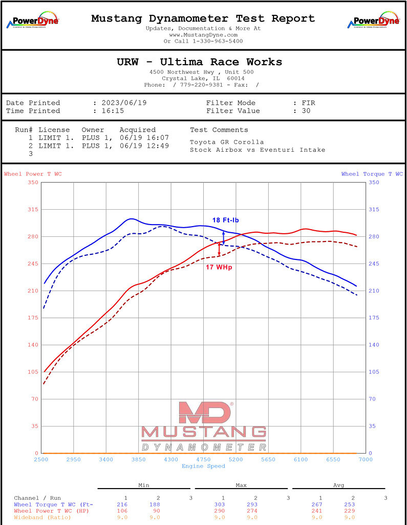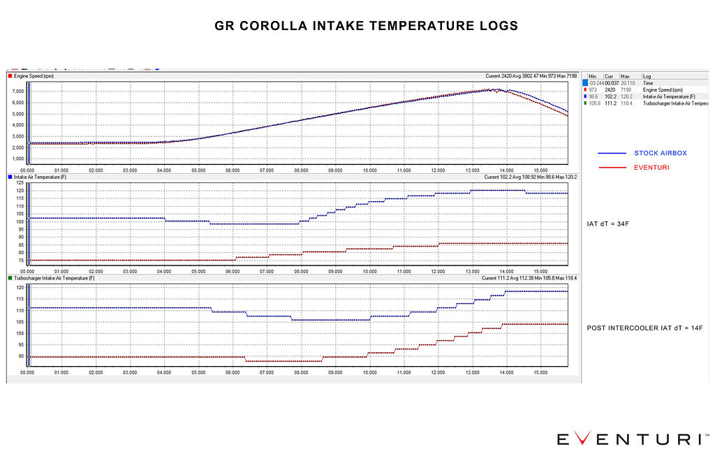 Pro zajištění maximálního možného přísunu vzduchu do motoru je v sání pro GR Corolla použit dosud největší vzduchový filtr, který má Eventuri k dispozici. Jeho průměr je 210 mm a při použití v airboxu se 4" výstupem je jeho průchodnost plných 26617,8 l/min. Filtrační schopnosti filtru jsou testovány dle normy ISO, aby filtr splňoval OEM tovární nároky a je používán jako suchý, tedy bez olejové impregnace.