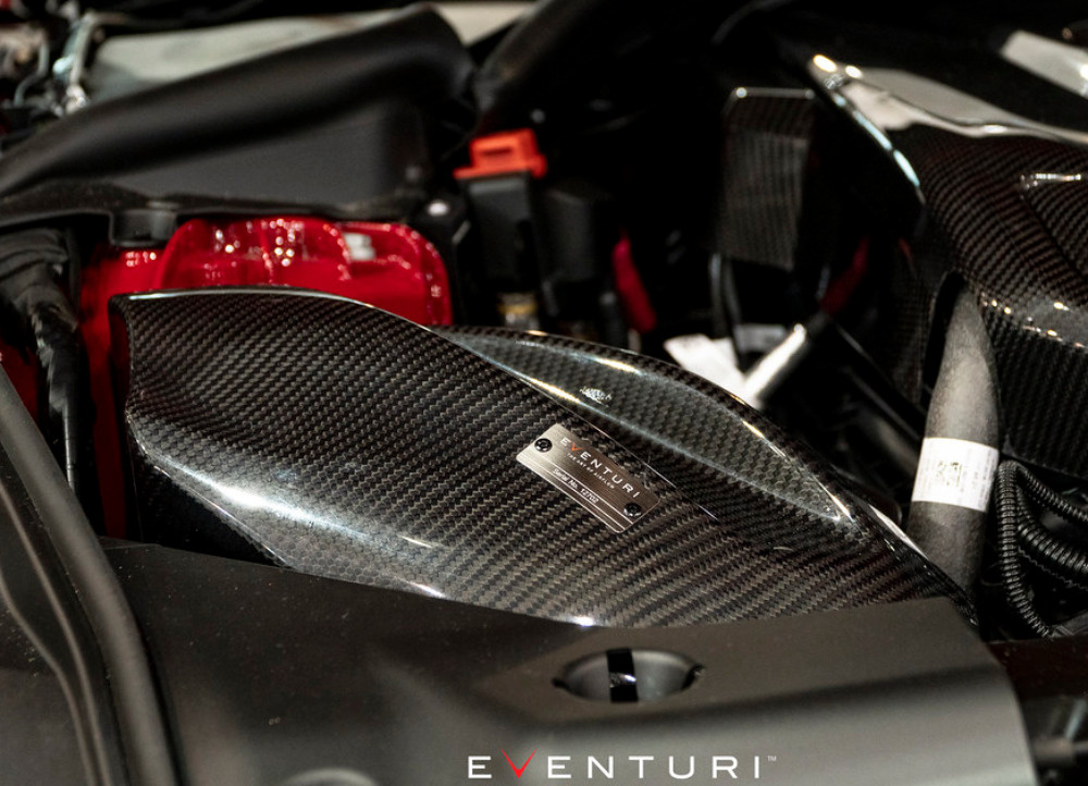 Karbonový airbox Eventuri má v tomto případě dva hlavní úkoly - chránit filtr před zdroji tepla a zásobovat filtr dostatečným množstvím čerstvého vzduchu. Protože je sání umístěno v bezprostřední blízkosti výfukových svodů, je pro výsledný výkon zásadní zamezit průniku tepla do airboxu. Proto byl airbox navržen jako zcela uzavřený a navíc maximálně využívá prostor pod kapotou vozu. I samotná trubka vedoucí do airboxu prochází laserem řezaným těsnicím plátem s gumovým těsněním. Poslední úpravou je pak dodatečný štít směrovaný proti výfukovým svodům. Tento štít je navíc opatřen špičkovou zlatou termoizolací.