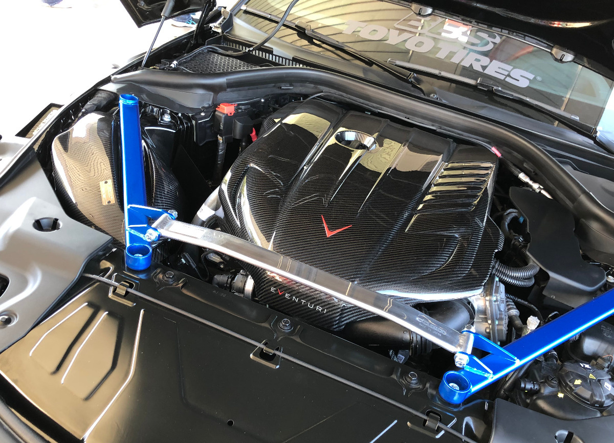 Karbonový airbox Eventuri má v tomto případě dva hlavní úkoly - chránit filtr před zdroji tepla a zásobovat filtr dostatečným množstvím čerstvého vzduchu. Protože je sání umístěno v bezprostřední blízkosti výfukových svodů, je pro výsledný výkon zásadní zamezit průniku tepla do airboxu. Proto byl airbox navržen jako zcela uzavřený a navíc maximálně využívá prostor pod kapotou vozu. I samotná trubka vedoucí do airboxu prochází laserem řezaným těsnicím plátem s gumovým těsněním. Poslední úpravou je pak dodatečný štít směrovaný proti výfukovým svodům. Tento štít je navíc opatřen špičkovou zlatou termoizolací.