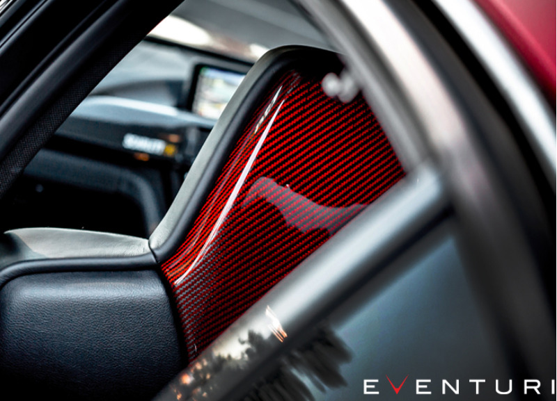 Designová sada krytů na záda předních sedadel vozu BMW M3 F80 / M4 F82, F83 vyrobená britskou společností Eventuri kompletně z prepreg karbonu, stejně jako Eventuri karbonové kity sání. Na výrobu dílu není použit žádný sklolaminát.