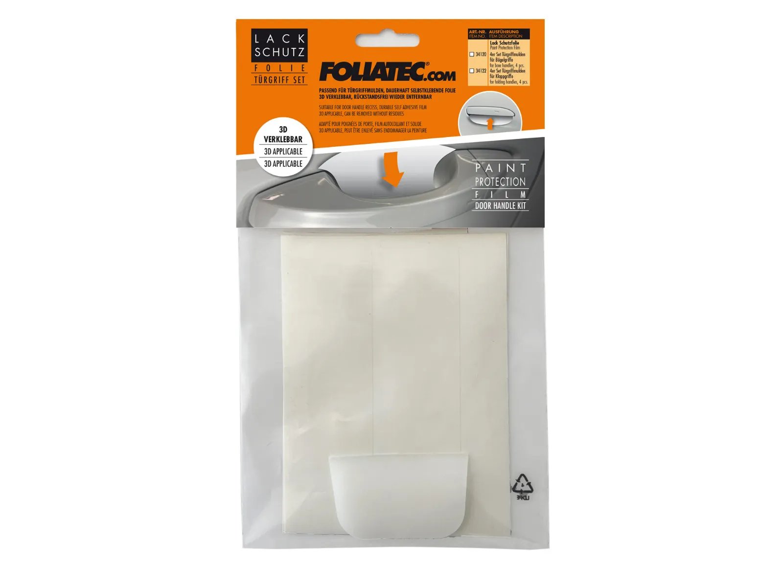 FOLIATEC ochranná fólie pod kliky dveří, 5 ks, čirá, varianta: pro zapuštěné kliky