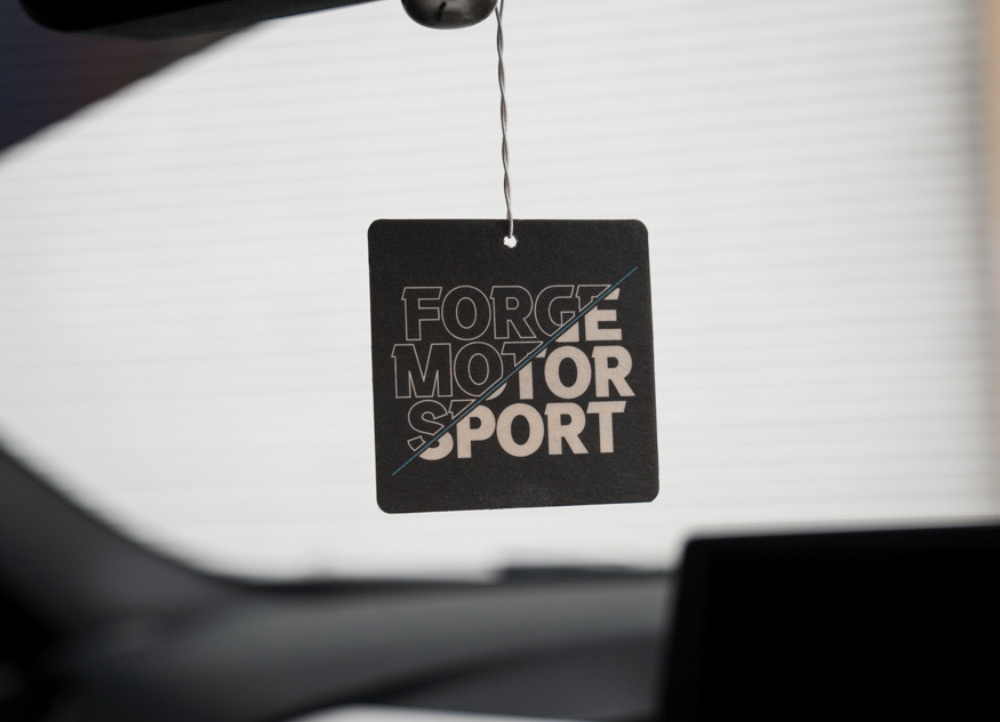 Závěsná vůně Forge Motorsport v designu "50/50" s vůní Tutti Frutti.