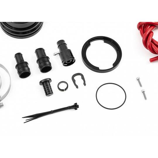 - Silikonová sací hadice zcela nahrazuje originální plastové vedení, které je odhalené a vzhledem k použitým materiálům náchylné na prasknutí a s ním související ztrátu plnicího tlaku.