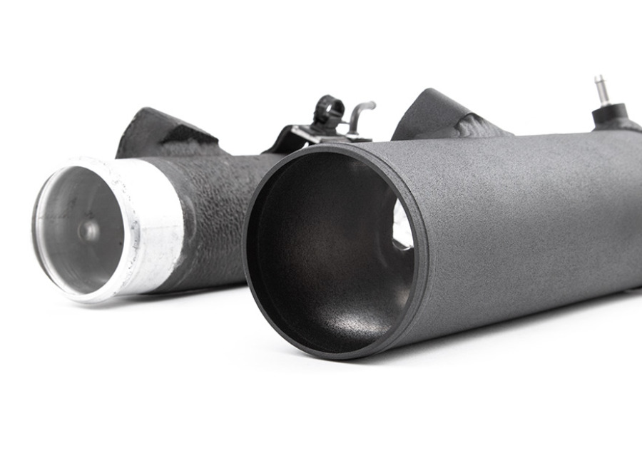 Originální výstupní boost pipe vedení z intercooleru nabízelo velký prostor k vylepšení. Forge Motorsport proto nejen zvětšil průměr trubky na 70 mm (tovární vedení má pouze 51 mm), ale zároveň přidal silikonové hadice pro napojení a 2× přírubu pro vstřikování vody a metanolu do sání. Tato úprava je tak v podstatě povinností pro každého, kdo má v úmyslu zvyšovat výkon svého vozu.
