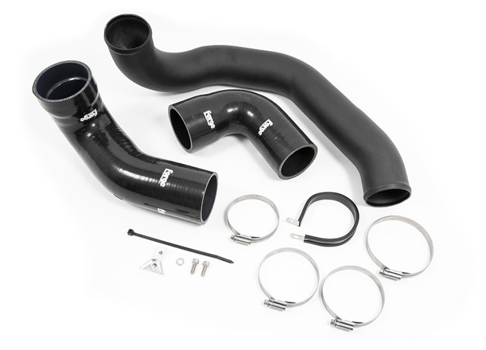 Pevná část vedení má zvětšený průměr z 63 mm na 76 mm (nárůst o 21 %) a místo sériové gumové spojky je použitá nová 4vrstvá protkávaná Fluorosilikonová hadice. Celé vedení je ve správné poloze fixováno specifickým držákem.