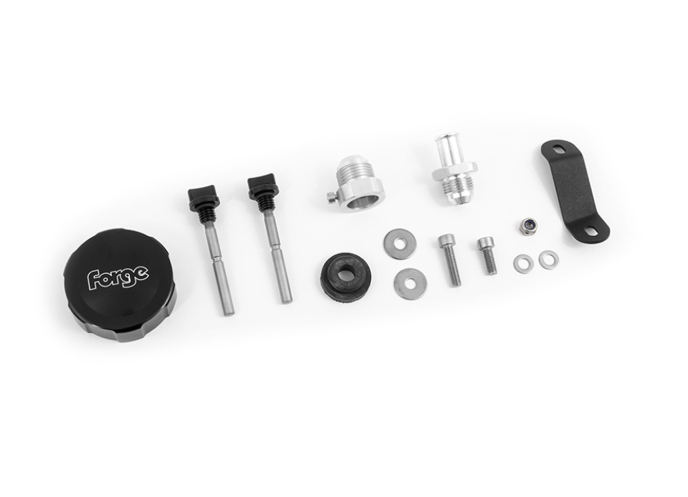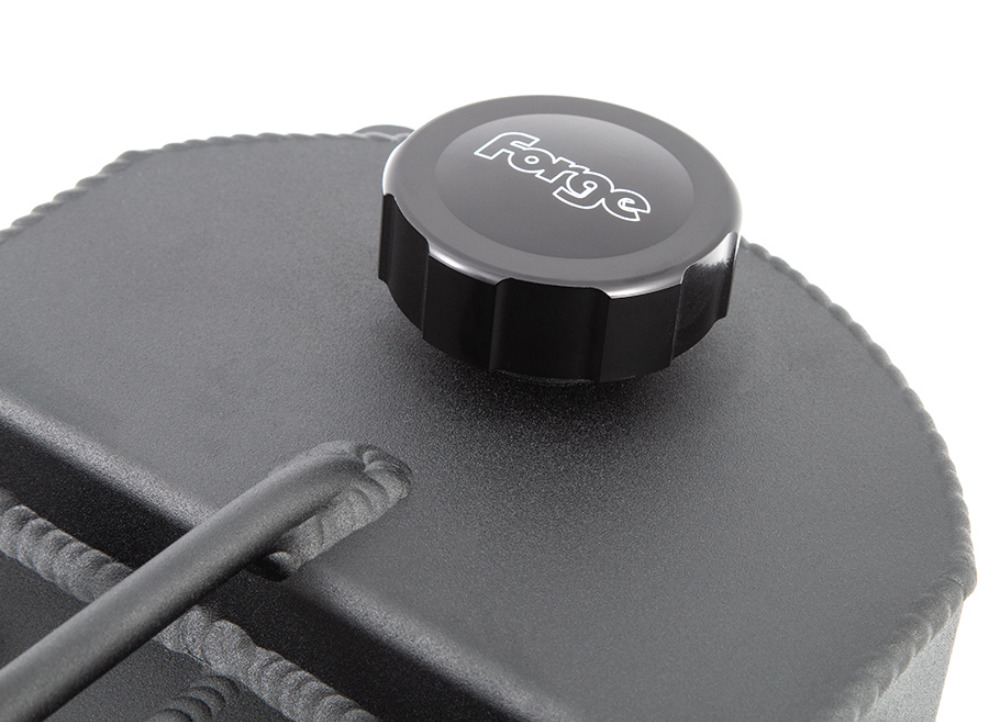 Část pro chladicí kapalinu má v nalévacím hrdle integrovanou měrku hladiny chladicí kapaliny. Pro jednotný vzhled je součástí sady také Forge Motorsport krytka víčka expanzní nádobky.