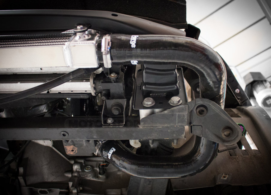 Originální řešení dvojitého intercooleru zapojeného paralelně není samo o sobě špatné, ale má své limity. Forge kit odstraňuje dlouhá vedení vzduchu s malým průměrem a zároveň výrazně zvětšuje aktivní plochu chladiče. Výsledkem je nižší odpor v proudění vzduchu, lepší průchodnost soustavy a hlavně efektivnější chlazení nasávaného vzduchu. To se projeví stabilnějším výkonem, lepší odezvou a větší rezervou pro další úpravy.