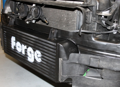 Vysoce výkonný intercooler (mezichladič stlačeného vzduchu) Forge Motorsport pro Audi TT RS byl na přání úpravců modernizován tak, aby bez omezení fungoval i na vozech s výkonem přesahujícím 500+ hp. Součástí této inovované sady je také upravená nárazová příčka, která zároveň slouží jako konstrukční podpora intercooleru.