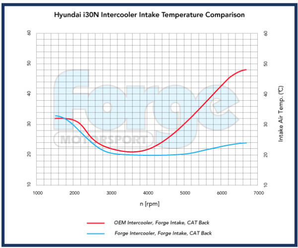 Teplotní rozdíl mezi originálním a Forge intercoolerem:
