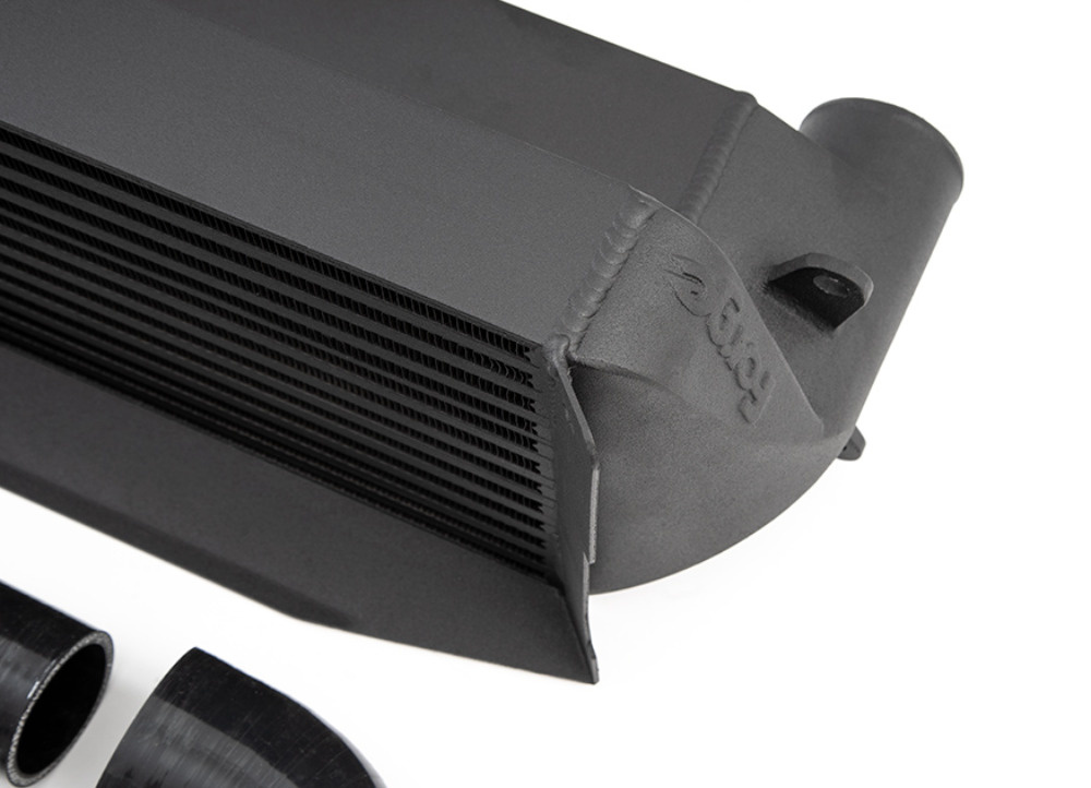 Vstup a výstup intercooleru byly zvětšeny na 65 mm, což představuje nárůst o 27% pro co nejplynulejší proudění vzduchu. To doplňuje pevné hardpipe vedení o průměru 64 mm (o 14 mm více než u továrního vedení). Hardpipe i samotný intercooler jsou dodávány v decentní černé barvě s jemnou texturou pro čistý OEM vzhled.