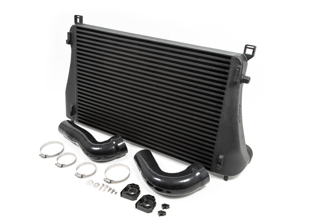 Vývoj začal osazením osvědčeného intercooleru pro předchozí generaci EA888 Gen3. Pomocí 3D skenování a CFD simulací proudění bylo navrženo zvětšení vstupního i výstupního průměru a nárůst celkového objemu jádra v rámci dostupného prostoru. Koncové části intercooleru byly na základě CFD testů následně vyrobeny technologií 3D tisku. Během vývoje bylo zároveň prověřeno několik konfigurací směrovacích příček pro ideální distribuci vzduchu uvnitř chladiče.