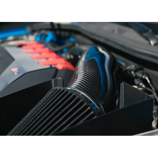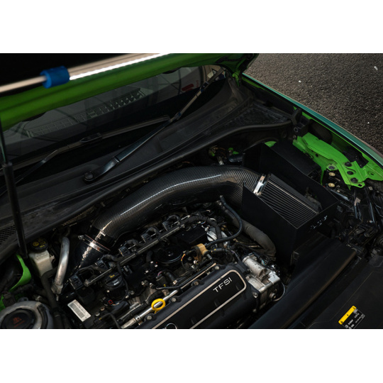 Karbonové vedení sání je na straně vstupu do turbodmychadla zakončeno průměrem 4". Směrem k filtru se rozšiřuje až na obří průměr 6", na který je nasazen sportovní kónický filtr Forge Motorsport. Dalším důležitým kritériem při vývoji byla teplota nasávaného vzduchu. Na základě testování různých variant bylo ponecháno efektivní vedení čerstvého vzduchu do nového tepelného štítu, který výškově lícuje s kapotou vozu. Na odvrácené straně airboxu se nachází další otvor pro nepřímý přísun vzduchu, jenž pomáhá zejména u vysoce upravených vozů (Stage 3+), kde zcela uzavřený airbox mohl představovat restrikci.