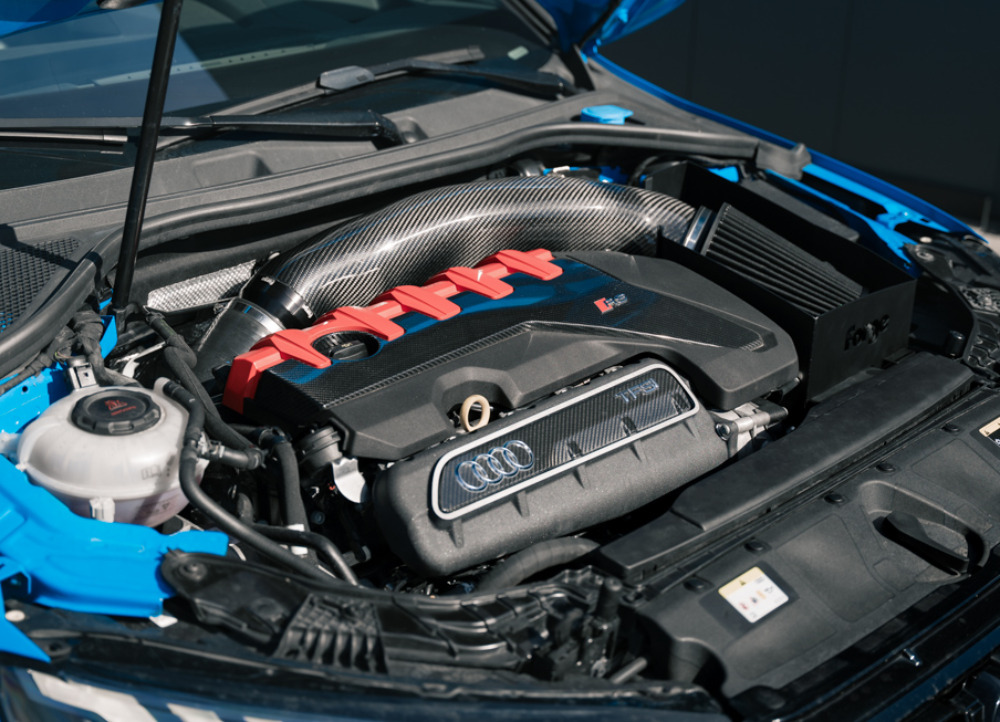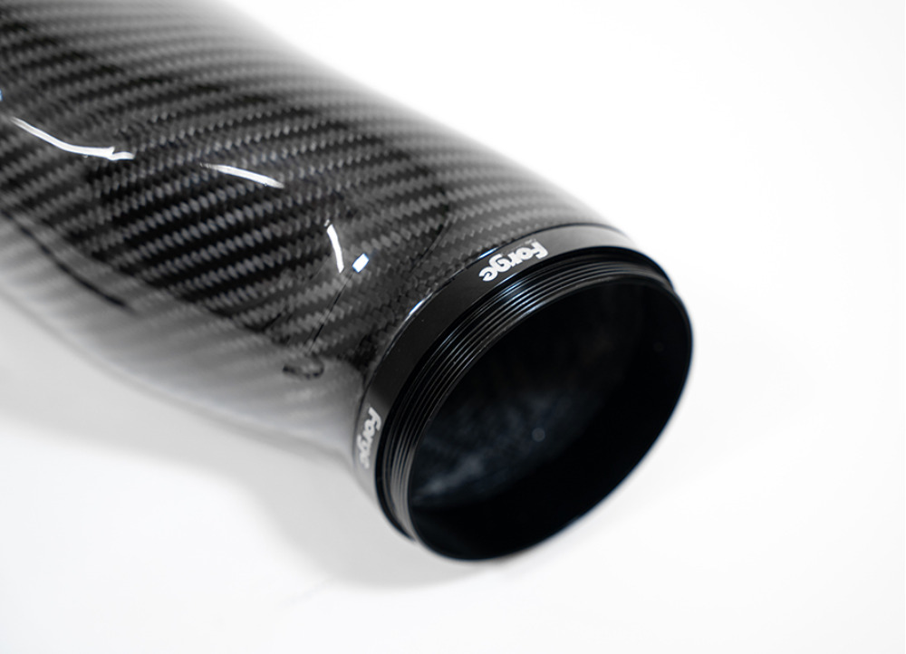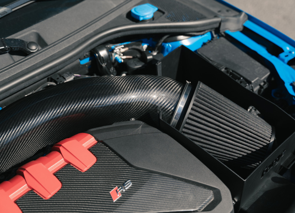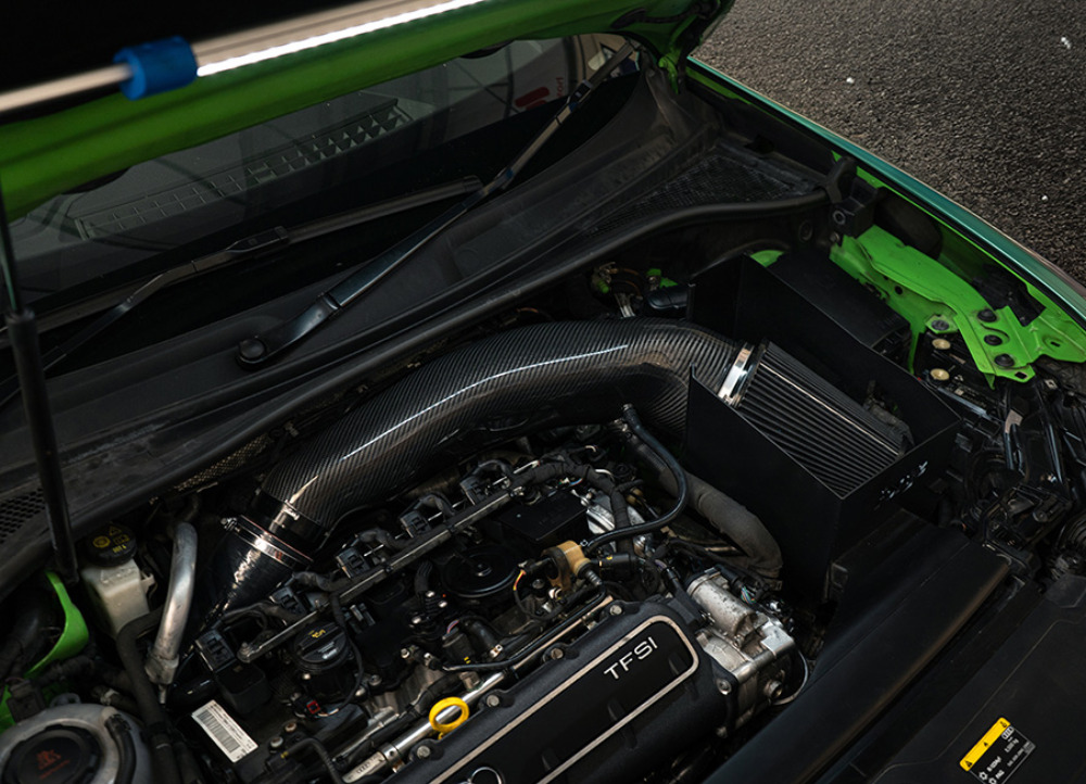 Karbonové vedení sání je na straně vstupu do turbodmychadla zakončeno průměrem 4". Směrem k filtru se rozšiřuje až na obří průměr 6", na který je nasazen sportovní kónický filtr Forge Motorsport. Dalším důležitým kritériem při vývoji byla teplota nasávaného vzduchu. Na základě testování různých variant bylo ponecháno efektivní vedení čerstvého vzduchu do nového tepelného štítu, který výškově lícuje s kapotou vozu. Na odvrácené straně airboxu se nachází další otvor pro nepřímý přísun vzduchu, jenž pomáhá zejména u vysoce upravených vozů (Stage 3+), kde zcela uzavřený airbox mohl představovat restrikci.
