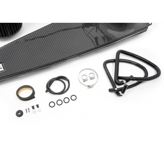 Kit sání Forge Motorsport využívá celé šířky panelu pro nasávání čerstvého vzduchu, do kterého se elegantně zasouvá. Utěsnění sacího vedení spolu s konstrukcí z prepreg karbonu zajišťuje nízkou teplotu nasávaného vzduchu. Velké množství chladného vzduchu před turbodmychadlem znamená rychlejší odezvu na sešlápnutí plynu a efektivnější využití jednotkou stanoveného poměru vzduchu a paliva.
