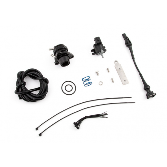 Kompletní sada odfukového Blow Off Ventilu (BOV) pro koncernové motory 2.0 TSI 4. generace (2021–). Ventil má otevřenou konstrukci, takže odfukuje přebytečný vzduch do okolí a projevuje se slyšitelným odfukem (na rozdíl od uzavřených ventilů, které jsou téměř neslyšné).