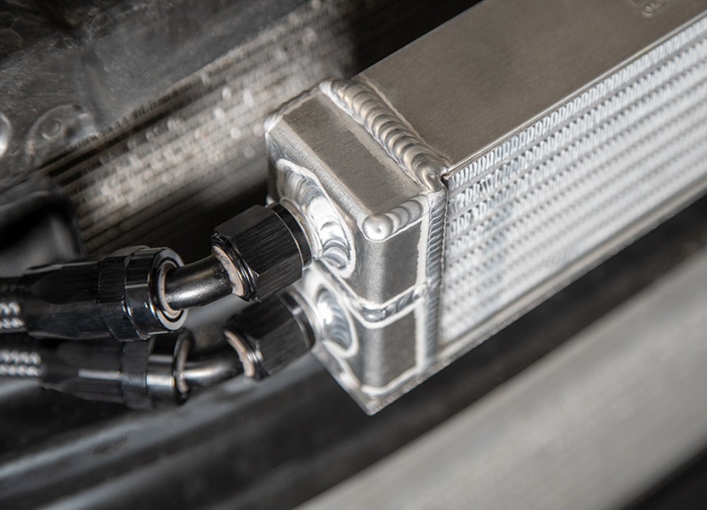 Na rozdíl od mnoha alternativních řešení zachovává FMOC12 také tovární výměník olej–voda, čímž se v reálném provozu zvyšuje celková kapacita chlazení. Součástí sady je laserem řezaný držák přesně pasující na nárazovou příčku vozu, předpřipravené hadice AN-8 a sendvičový adaptér s termostatem. Instalace je díky tomu přímá a bez úprav.