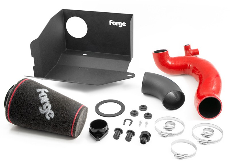 Filtr doplňuje silikonová sací hadice se zvětšeným objemem, hladkou vnitřní stěnou a příruba pro napojení na turbodmychadlo. Hadice je navržena tak, aby vedla vzduch k turbu co nejpřímější cestou bez restrikcí a nežádoucích zlomů. Celkový objem vedení vzduchu je u Forge větší o 50 % oproti sérii a v místě vstupu do turba narostl objem o 46 %. Výsledkem je lepší odezva na plyn a výraznější zvukový projev vozu.