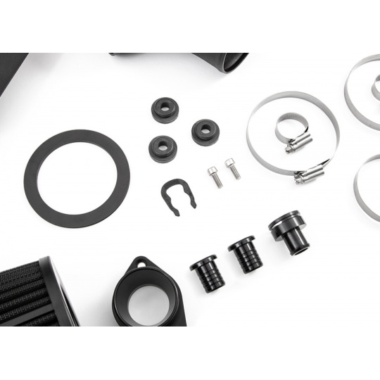 Filtr doplňuje silikonová sací hadice se zvětšeným objemem, hladkou vnitřní stěnou a příruba pro napojení na turbodmychadlo. Hadice je navržena tak, aby vedla vzduch k turbu co nejpřímější cestou bez restrikcí a nežádoucích zlomů. Celkový objem vedení vzduchu je u Forge větší o 50 % oproti sérii a v místě vstupu do turba narostl objem o 46 %. Výsledkem je lepší odezva na plyn a výraznější zvukový projev vozu.