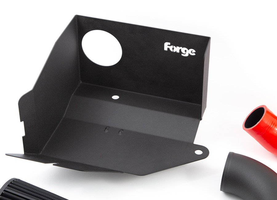 Filtr doplňuje silikonová sací hadice se zvětšeným objemem, hladkou vnitřní stěnou a příruba pro napojení na turbodmychadlo. Hadice je navržena tak, aby vedla vzduch k turbu co nejpřímější cestou bez restrikcí a nežádoucích zlomů. Celkový objem vedení vzduchu je u Forge větší o 50 % oproti sérii a v místě vstupu do turba narostl objem o 46 %. Výsledkem je lepší odezva na plyn a výraznější zvukový projev vozu.