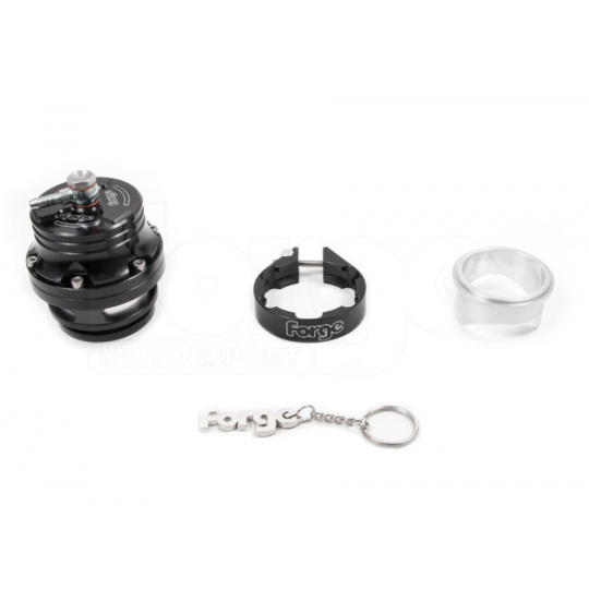 Forge Motorsport univerzální otevřený Blow Off Ventil (BOV) 50 mm, barva ventilu: Černá, typ pružiny: Žlutá pružina + 15,65 mm podložka (-8 PSI)