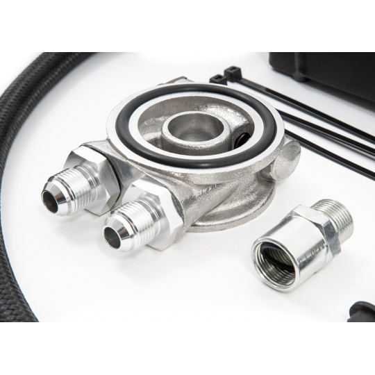 Sada FMOC14 navíc na rozdíl od některých jiných řešení zachovává tovární výměník olej–voda, čímž v podstatě zdvojnásobuje kapacitu chlazení oleje. Součástí je přesně tvarovaný držák pro Kona N, opletené hadice ve správné délce a sendvičový adaptér s termostatem – vše připravené pro bezproblémovou instalaci.