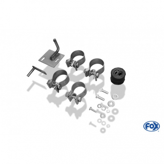 Výfukové systémy Fox se montují na původní tovární držáky bez nutnosti úprav. Montážní materiál je součástí balení.