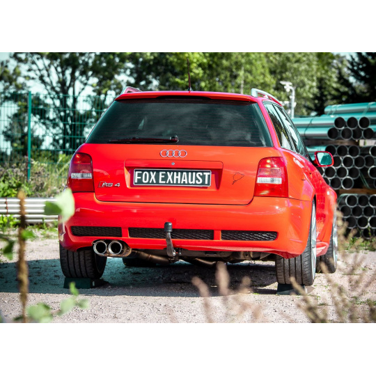 Fox Sportauspuff koncový a středový tlumič včetně Y-adaptéru pro připojení na originální downpipe s koncovkou 2x90 Typ 24 dvojitá pro Audi RS4 B5 s motorem 2.7