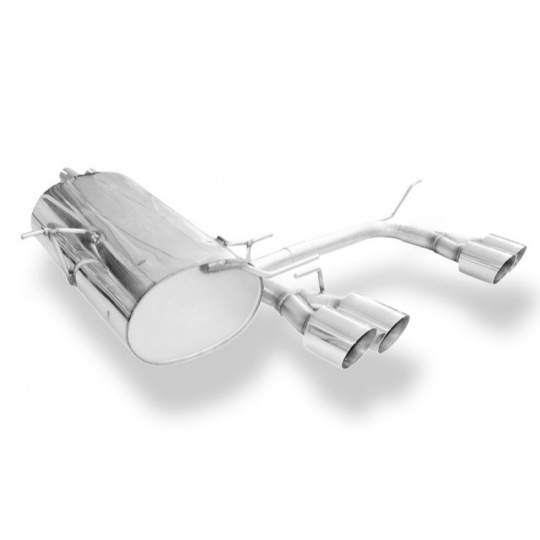 Fox Sportauspuff koncový tlumič výfuku M3-Optik V2 s koncovkou 4×90 mm typ 14, střední varianta 2 pro BMW řada 3 E46 s motorem 2.0, 2.2, 2.5, 2.8, 3.0