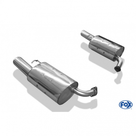 Koncový díl výfuku Fox Sportauspuff dodá vašemu vozu sytější sportovní zvuk a atraktivnější vzhled díky konstrukci z kvalitní nerezové oceli a stylové koncovce nebo koncovkám (u některých modelů jsou využívány originální koncovky v zadním nárazníku).