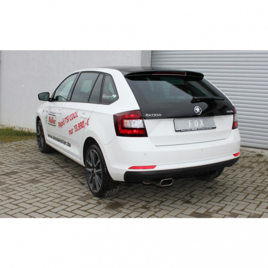 Fox Sportauspuff koncový tlumič výfuku s koncovkou 150x70 Typ 52 pro Škoda Rapid Spaceback s motorem 1.2, 1.4, 1.6 TDI