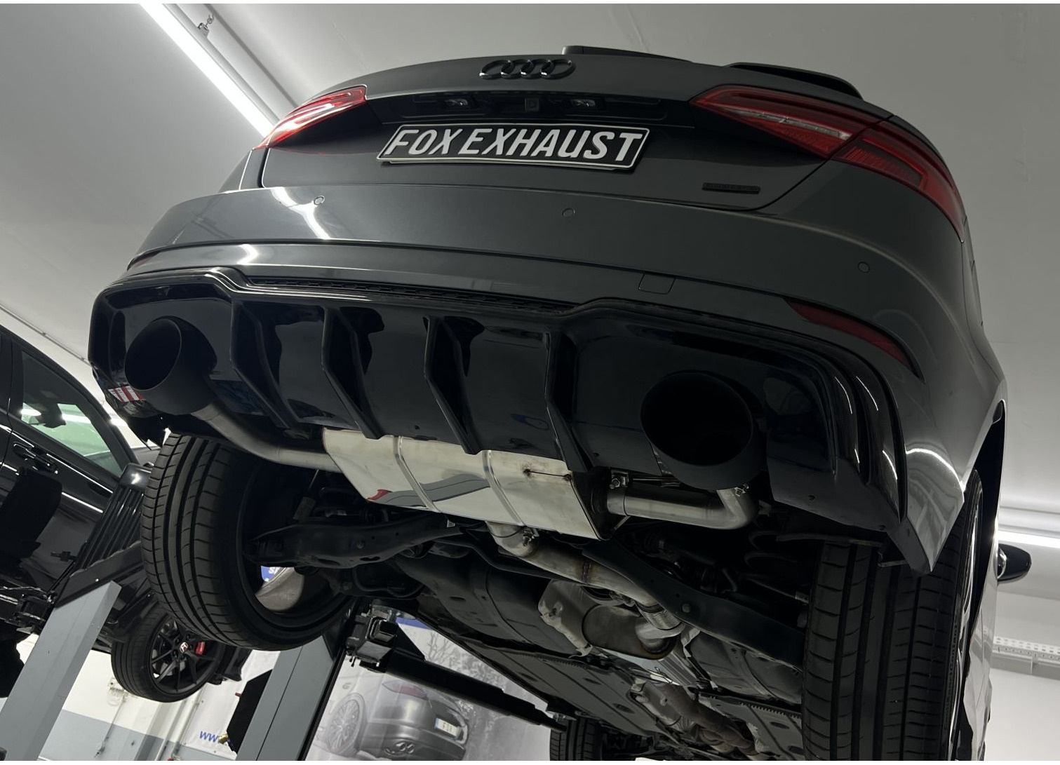 Fox Sportauspuff koncový tlumič výfuku s koncovkou 160x130 Typ 38 černá na obou stranách pro Audi A3 8V Sportback Quattro Facelift 2019- s motorem 2.0