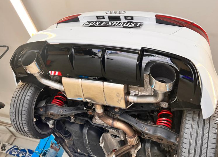 Fox Sportauspuff koncový tlumič výfuku s koncovkou 160x130 Typ 38 na obou stranách pro Audi A3 8V 2014- s motorem 1.8, 2.0, sportback