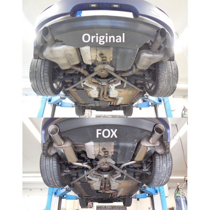 Koncový díl výfuku Fox Sportauspuff dodá vašemu vozu sytější sportovní zvuk a atraktivnější vzhled díky konstrukci z kvalitní nerezové oceli a stylové koncovce nebo koncovkám (u některých modelů jsou využívány originální koncovky v zadním nárazníku).
