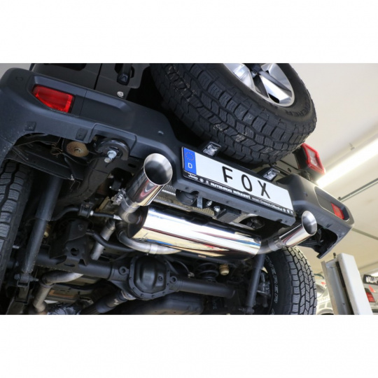 Fox Sportauspuff koncový tlumič výfuku s koncovkou 1x100 Typ 25 na obou stranách pro Jeep Wrangler IV 2017- s motorem 2.0