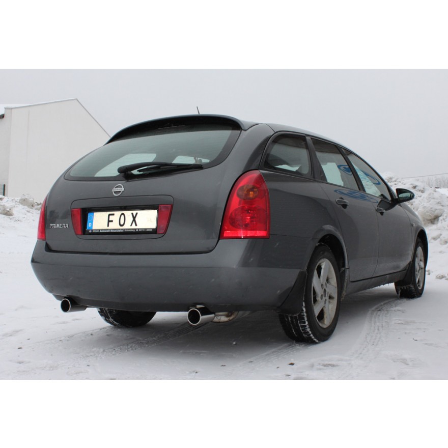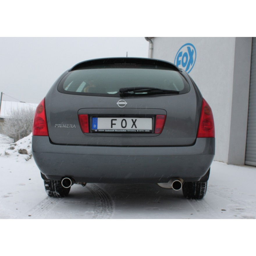 Fox Sportauspuff koncový tlumič výfuku s koncovkou 1x90 Typ 12 na obou stranách pro Nissan Primera P12 2002- s motorem 1.8, 2.0, Traveller