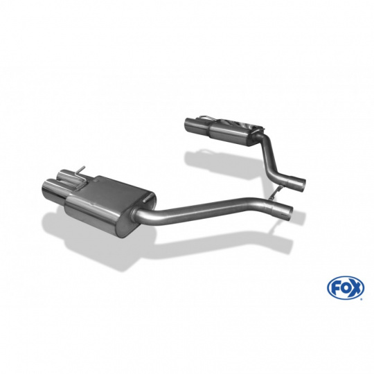 Koncový díl výfuku Fox Sportauspuff dodá vašemu vozu sytější sportovní zvuk a atraktivnější vzhled díky konstrukci z nerezové oceli s ozdobnou koncovkou nebo koncovkami výfuku (u některých vozů jsou využívány originální koncovky v zadním nárazníku).