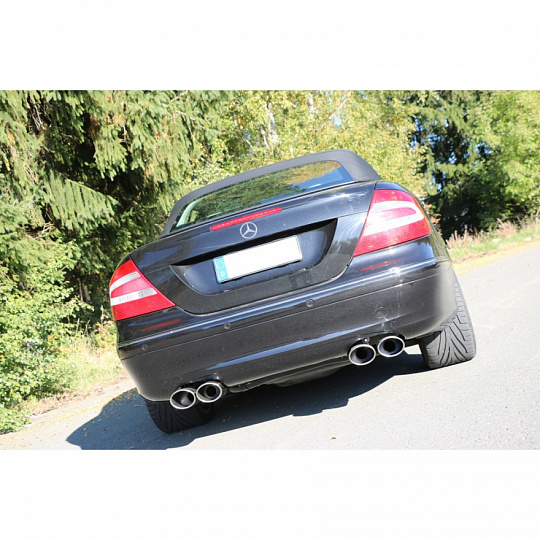 Fox Sportauspuff koncový tlumič výfuku s koncovkou 2x115x85 Typ 32 na obou stranách pro Mercedes CLK 209 2002- s motorem 1.8 K, 2.6, 2.7 CDI, 3.0, 3.0 CDI, 3.2, 3.5, 5.0
