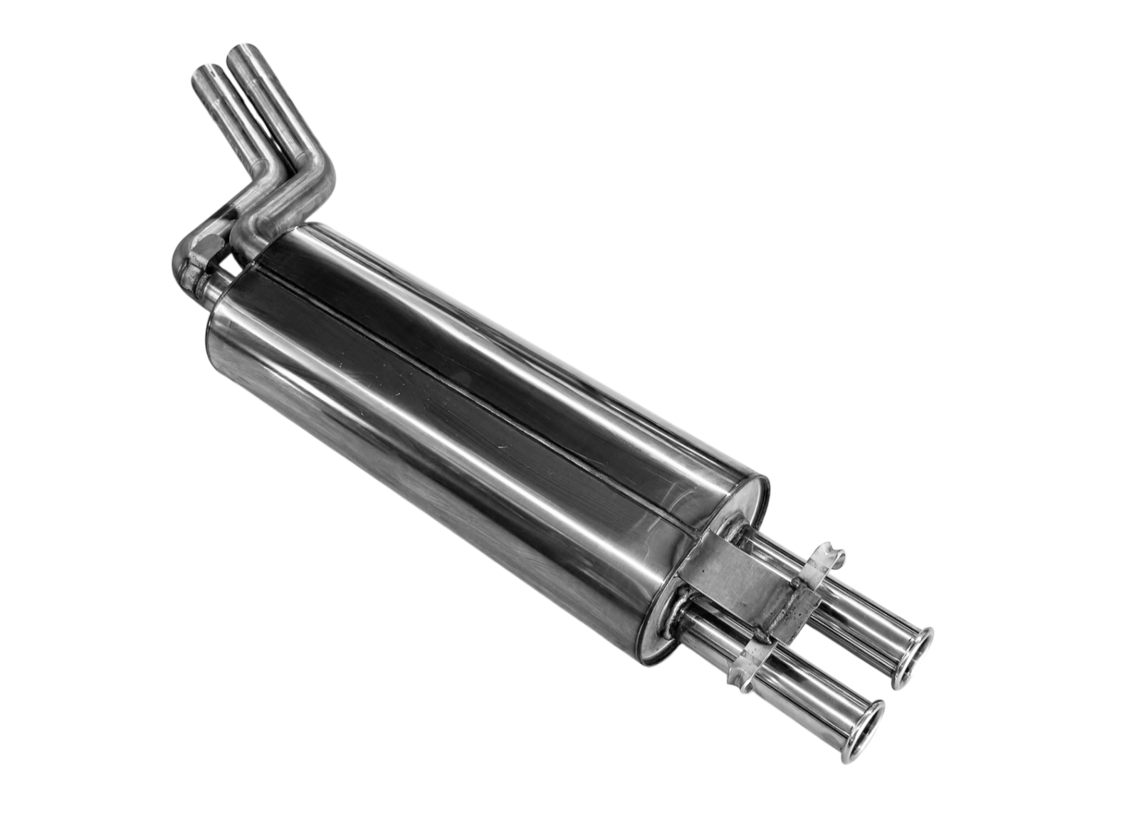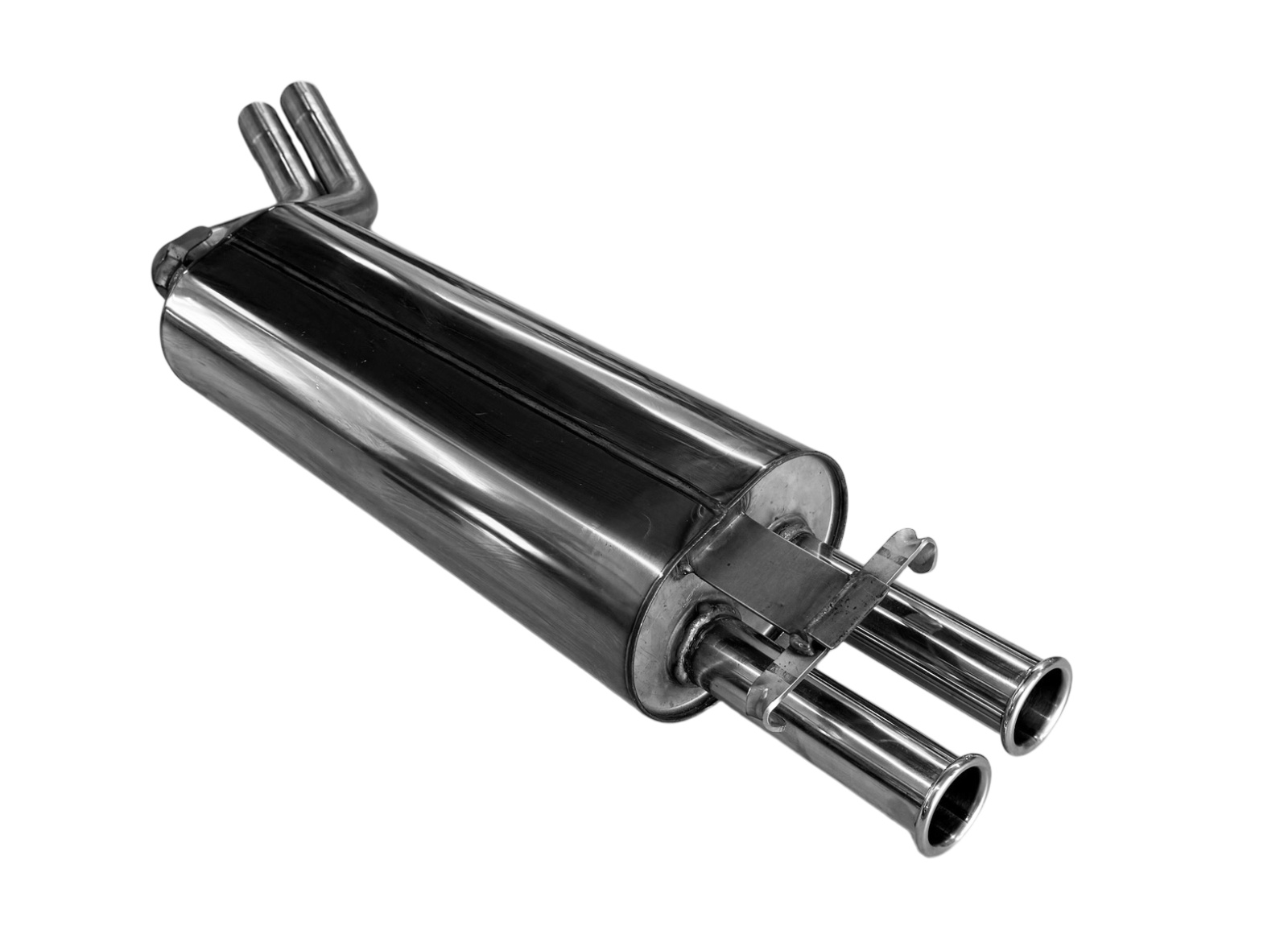 Fox Sportauspuff koncový tlumič výfuku s koncovkou 2x50 Typ 12 vyrolované ven pro Mercedes třída E W123 s motorem 2.7
