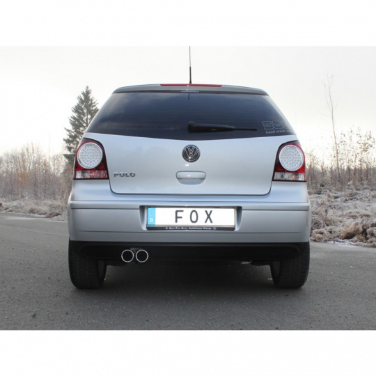 Fox Sportauspuff koncový tlumič výfuku s koncovkou 2x70 Typ 13 pro Volkswagen Polo 9N s motorem 1.2, 1.4, 1.4 TDI, 1.9 SDI, 1.9 TDI