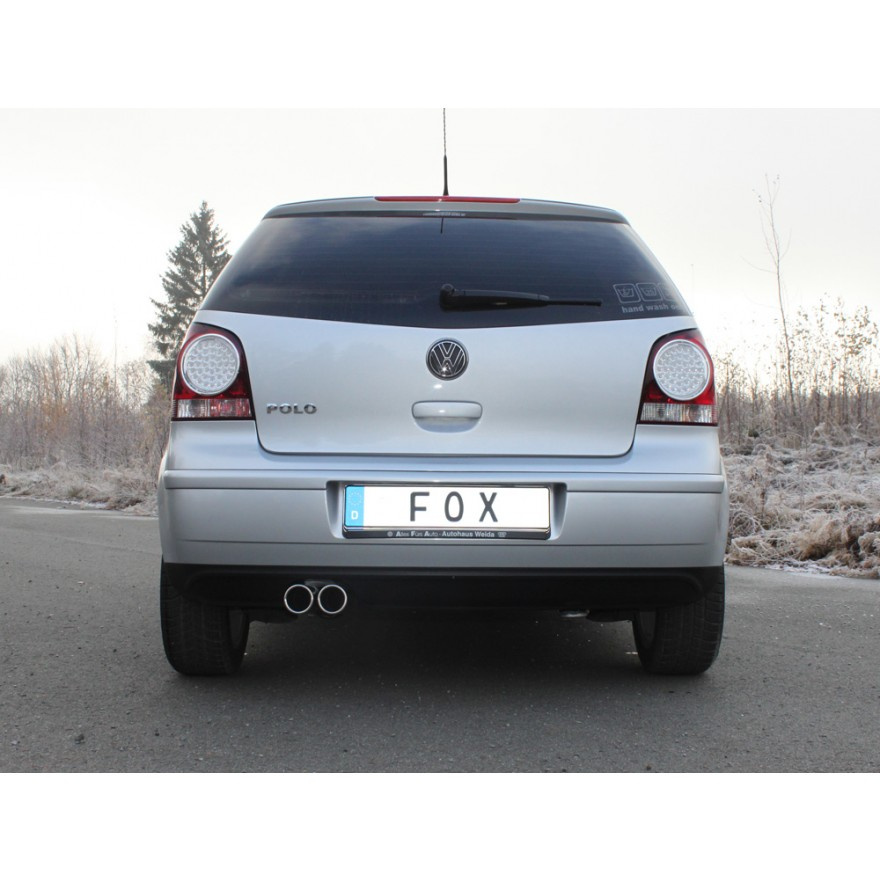 Fox Sportauspuff koncový tlumič výfuku s koncovkou 2x70 Typ 13 pro Volkswagen Polo 9N s motorem 1.2, 1.4, 1.4 TDI, 1.9 SDI, 1.9 TDI