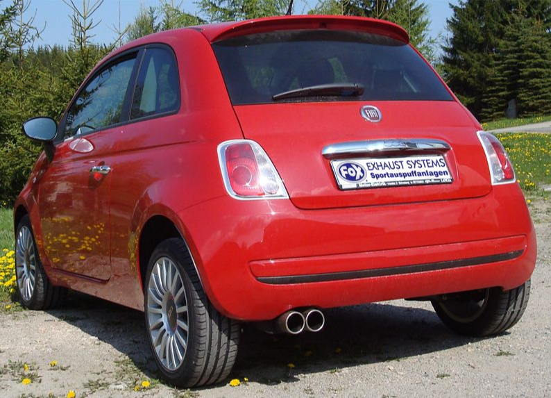 Fox Sportauspuff koncový tlumič výfuku s koncovkou 2x76 Typ 12 pro Fiat 500c s motorem 0.9, 1.2, 1.3 D, 1.4
