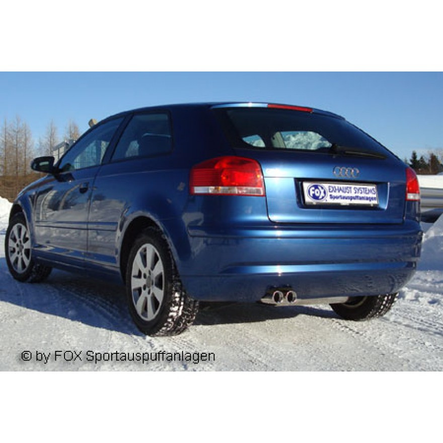 Fox Sportauspuff koncový tlumič výfuku s koncovkou 2x76 Typ 13 pro Audi A3 8P s motorem 1.2, 1.4 TFSI, 1.6, 1.6 TDI, 1.9 TDI, 2.0, 2.0 TDI, 3dvéř.