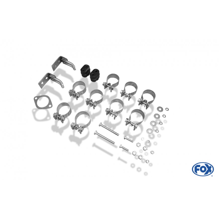 Výfukové systémy Fox se montují na původní tovární držáky bez nutnosti úprav. Montážní materiál je součástí balení.
