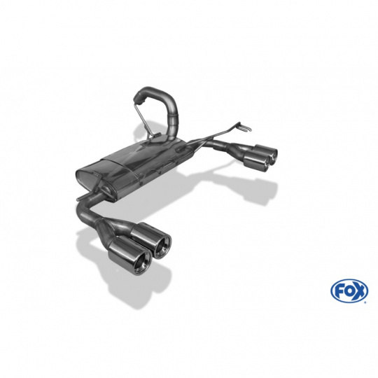 Koncový díl výfuku Fox Sportauspuff dodá vašemu vozu sytější sportovní zvuk a atraktivnější vzhled díky konstrukci z nerezové oceli s ozdobnou koncovkou nebo koncovkami výfuku (u některých vozů jsou využívány originální koncovky v zadním nárazníku).