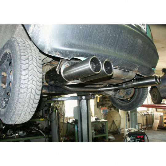 Fox Sportauspuff koncový tlumič výfuku s koncovkou 2x80 Typ 13 na obou stranách pro Opel Corsa B s motorem 1.2, 1.4, 1.5 TD, 1.6, průměr výf. vedení 50 mm